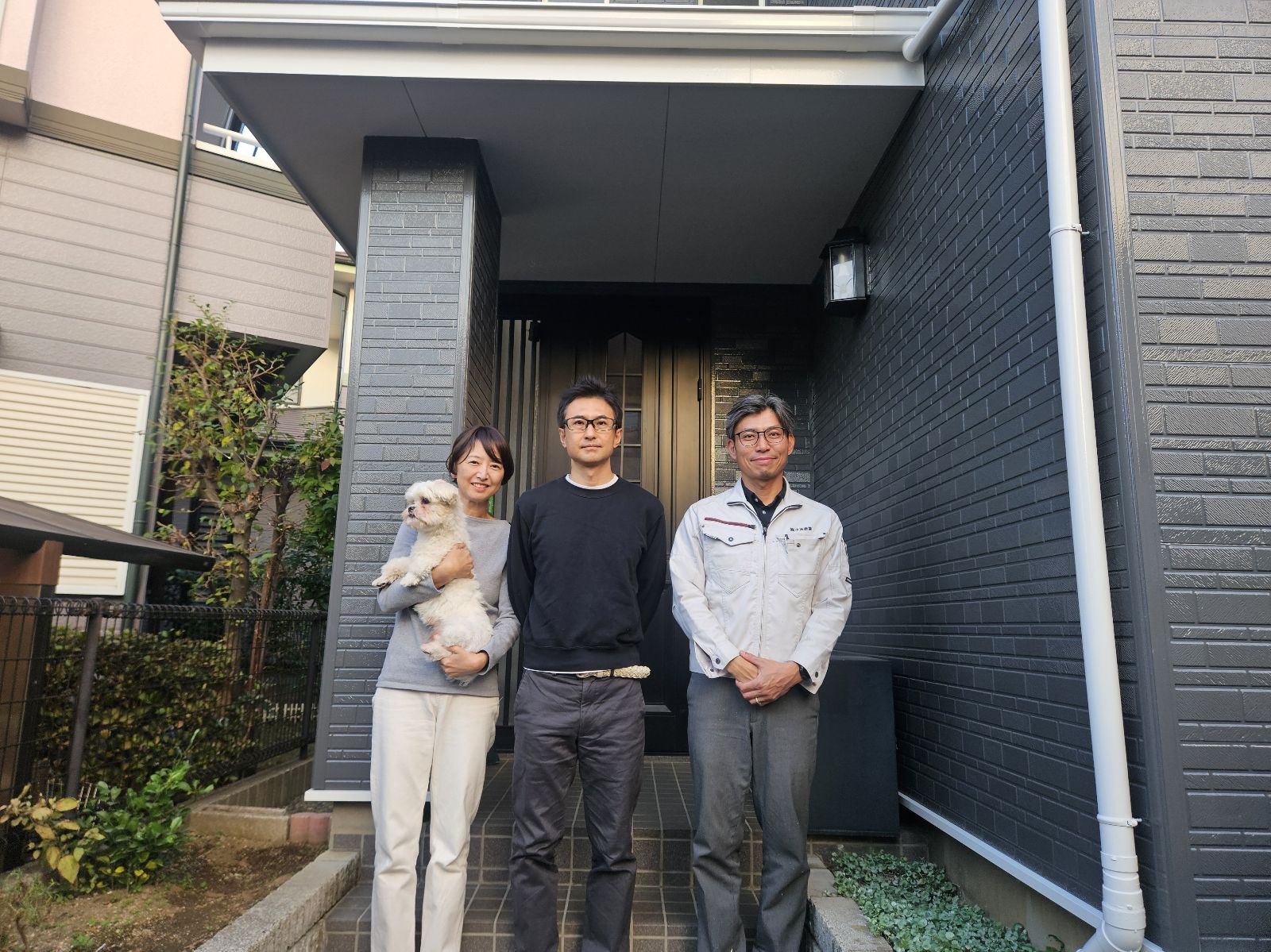 - 外壁はアルミサイディングでしたが色褪せが気になるしイメージを変えたいとの事でご依頼いただきました。 雪の影響で樋が破損しており火災保険にて足場代、樋の交換代約45万円を補う事ができました。 お色についてはマイカラーシュミレーションにて様々シュミレーション頂き、最後グレー系で迷われていたのでべニア板にてサンプルを作り決定頂きました。