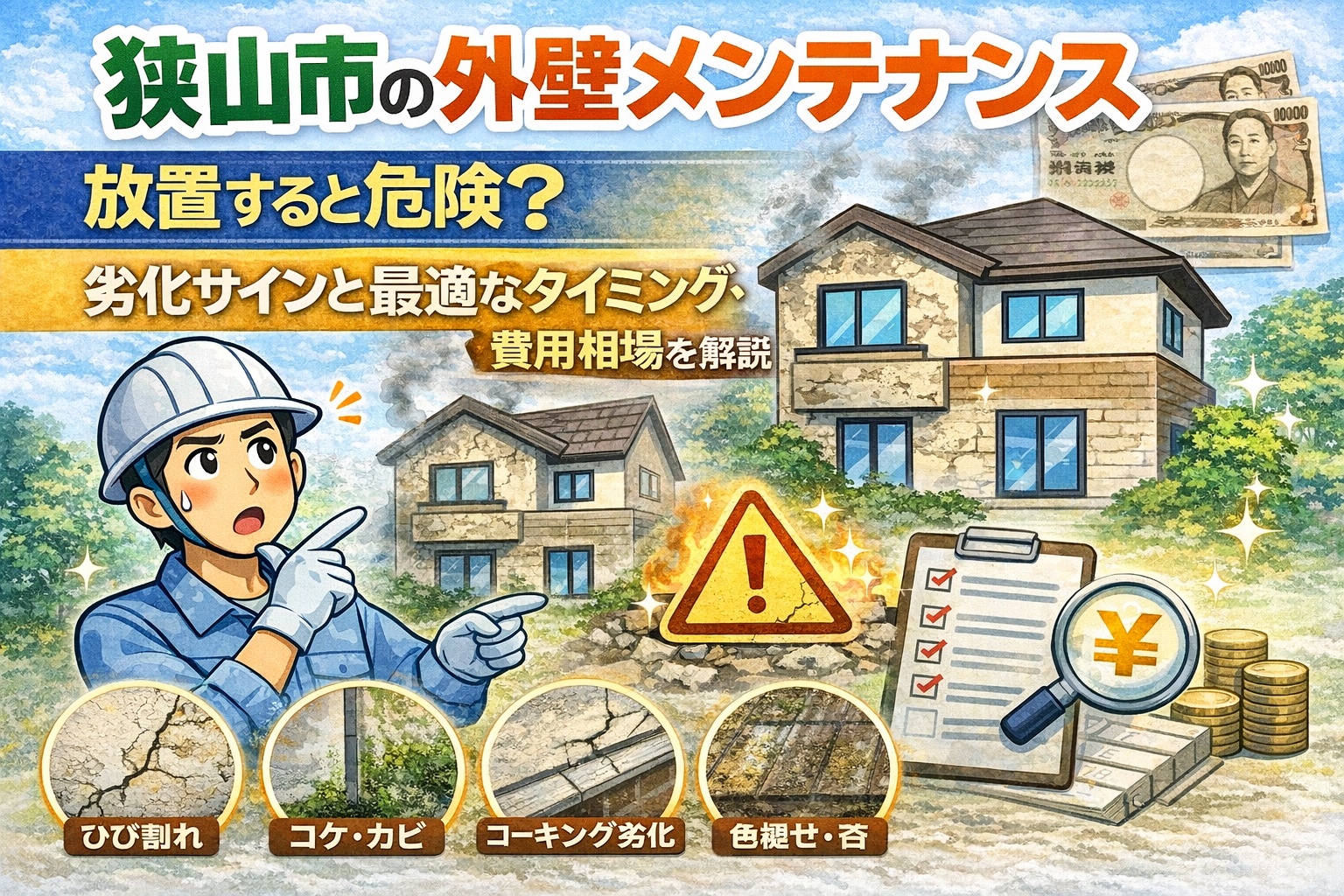 2025.12.13 【2025年版】狭山市の外壁メンテナンス|放置すると危険?劣化サインと最適なタイミング・費用相場を解説 【2025年版】狭山市の外壁メンテナンス|放置すると危険?劣化サインと最適なタイミング・費用相場を解...